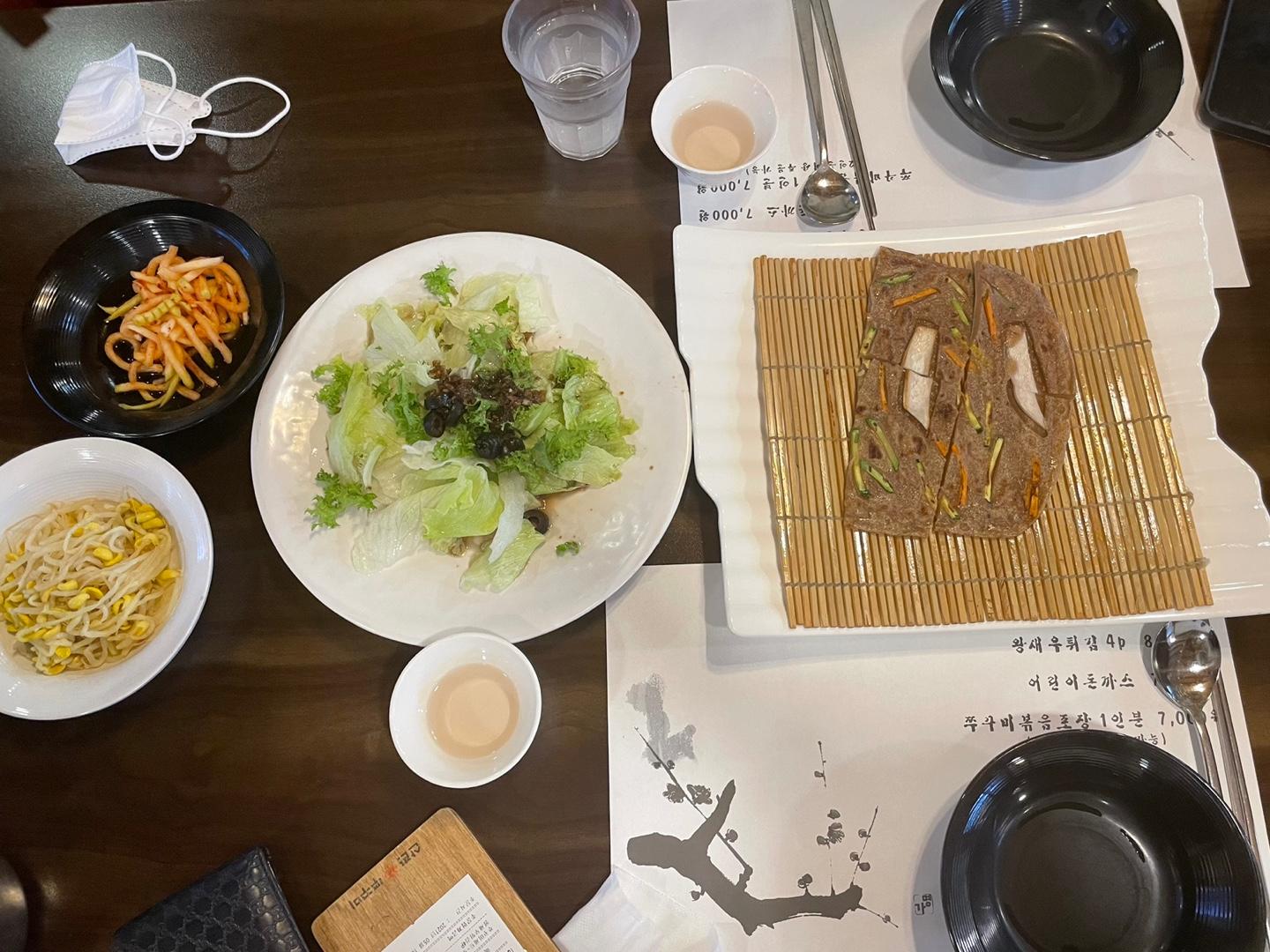 세트로 주문을 하게 되면 샐러드와 메밀전이 같이 먼저 서빙되어 나옵니다~