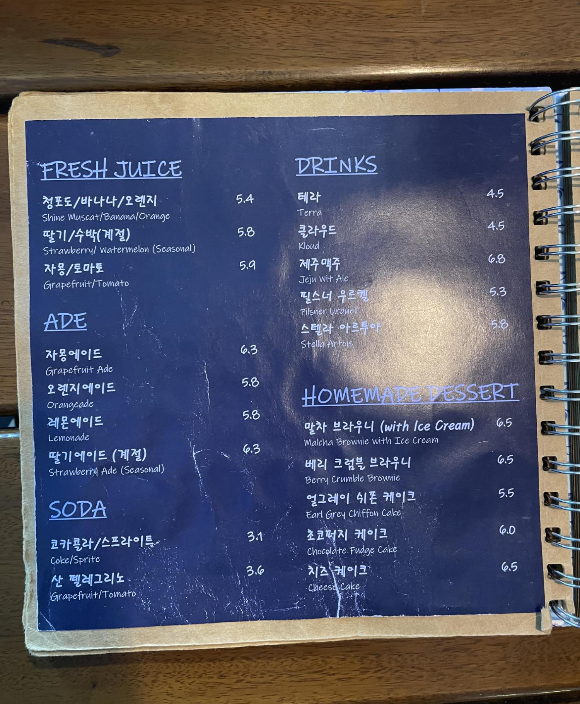 메뉴판 너무 귀욤귀욤하네용 ╹◡╹