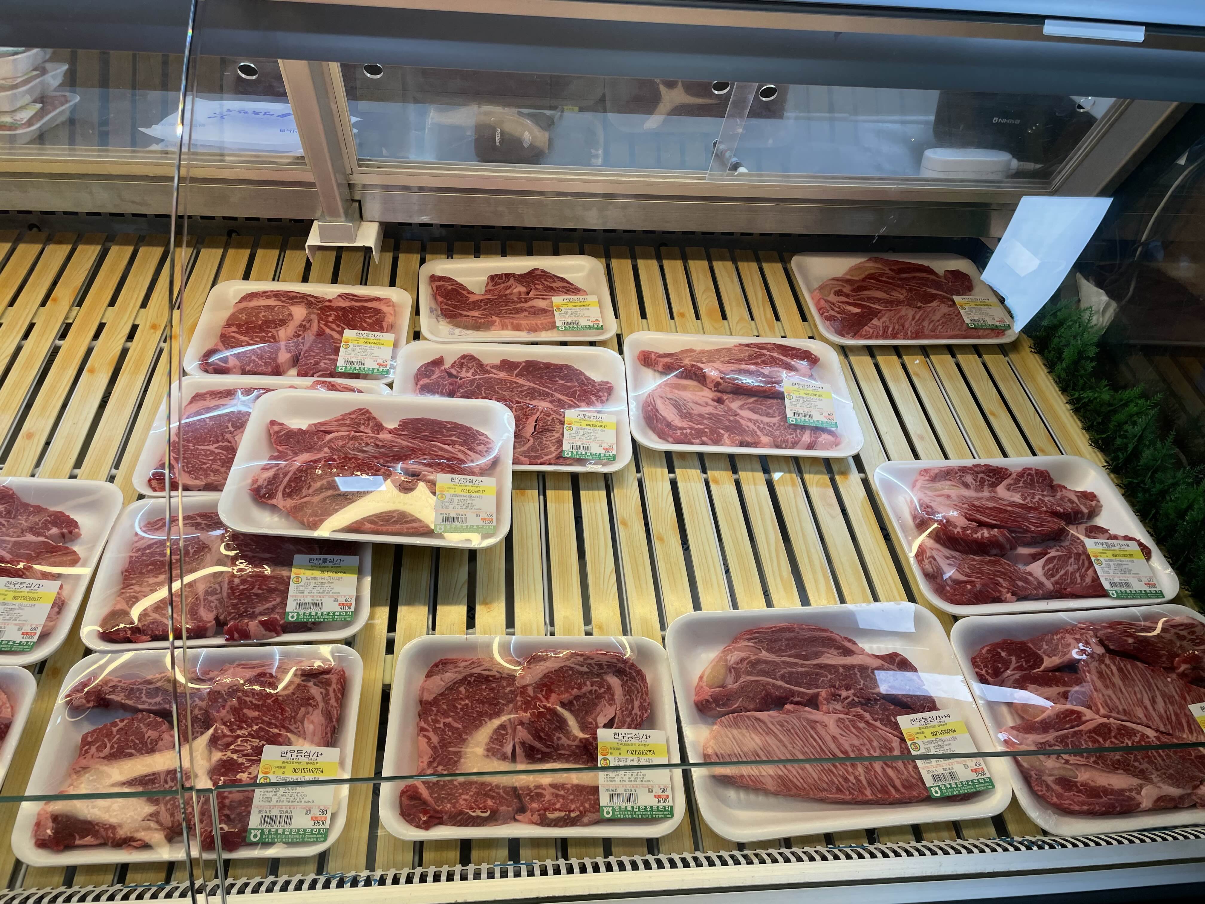 오른쪽은 신선한 고기들을 보실 수 있어요~