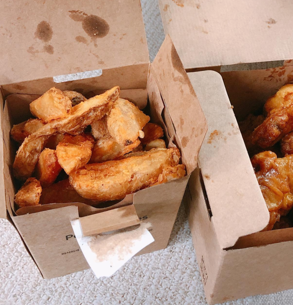 중간중간에 사알짝 매콤한? 칠리소스를 묻힌 감자 한 입.